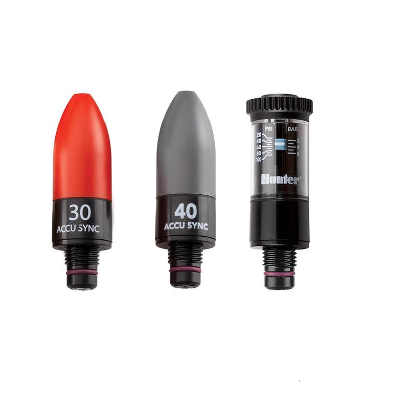 使用壓力調(diào)節(jié)器調(diào)節(jié)灌溉系統(tǒng)壓力可以省水,并且延長灌溉系統(tǒng)的使用壽命。通過對每個灌溉區(qū)域的壓力進行調(diào)節(jié),使該區(qū)域內(nèi)的灌水設備在壓力下運行從而實現(xiàn)節(jié)水。 Accu Sync是一種可與亨特所有電磁閥兼容的、使用簡便的壓力調(diào)節(jié)器??烧{(diào)式壓力調(diào)節(jié)器可將壓力在1.5-7 bar(150-700 kPa)之間設定;而固定式壓力調(diào)節(jié)器,不用進行壓力設定,可以方便地安裝在系統(tǒng)中的任何一個相應區(qū)域。Accu Sync壓力調(diào)節(jié)器的可靠性,其使用玻璃填充尼龍材料,可以安裝在條件嚴酷的項目上。所有區(qū)域的壓力都與Accu Sync壓力調(diào)節(jié)器的設置壓力一致。